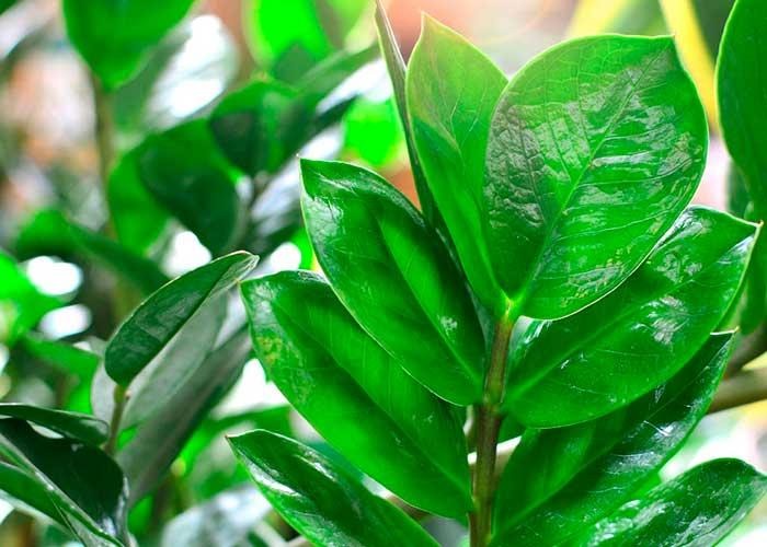 A zamioculca é bastante resistente e tolera bem ambientes com pouca luz. Suas folhas brilhantes chamam atenção e ajudam a compor a decoração de salas, escritórios e corredores. A rega pode ser espaçada, já que a planta não gosta de solo muito úmido.